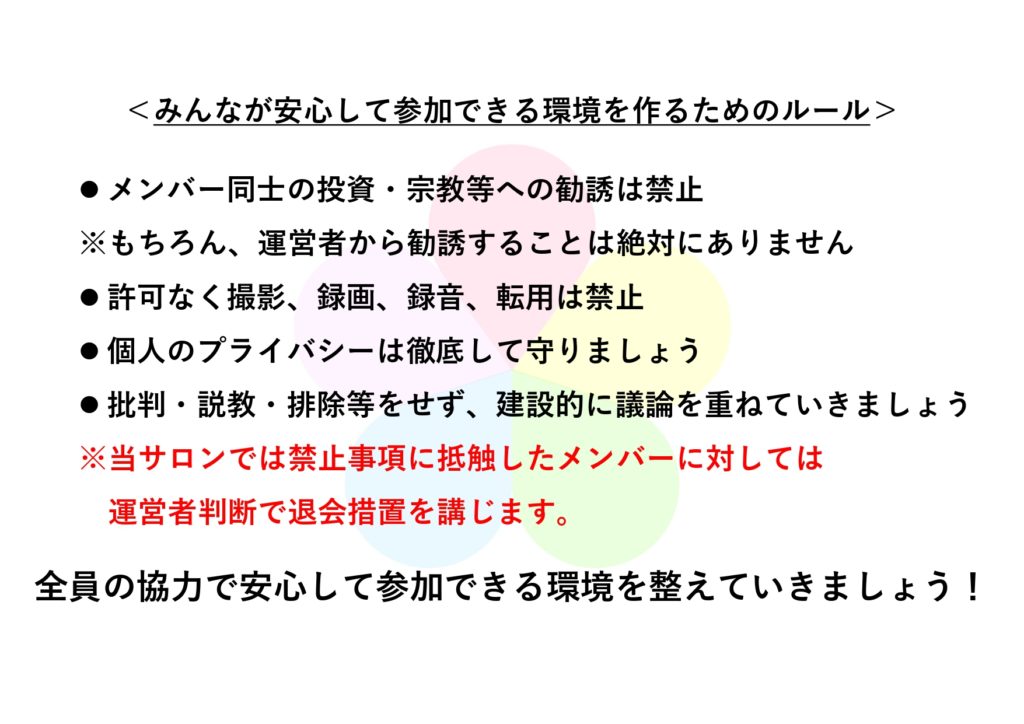 当サロンへの参加ルールは以下の通りですので、ご確認をお願い致します。